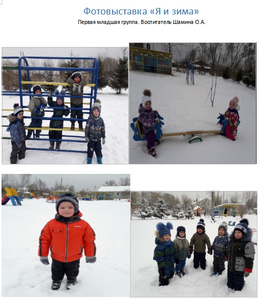 - Фотовыставка «Я и зима», первая младшая группа